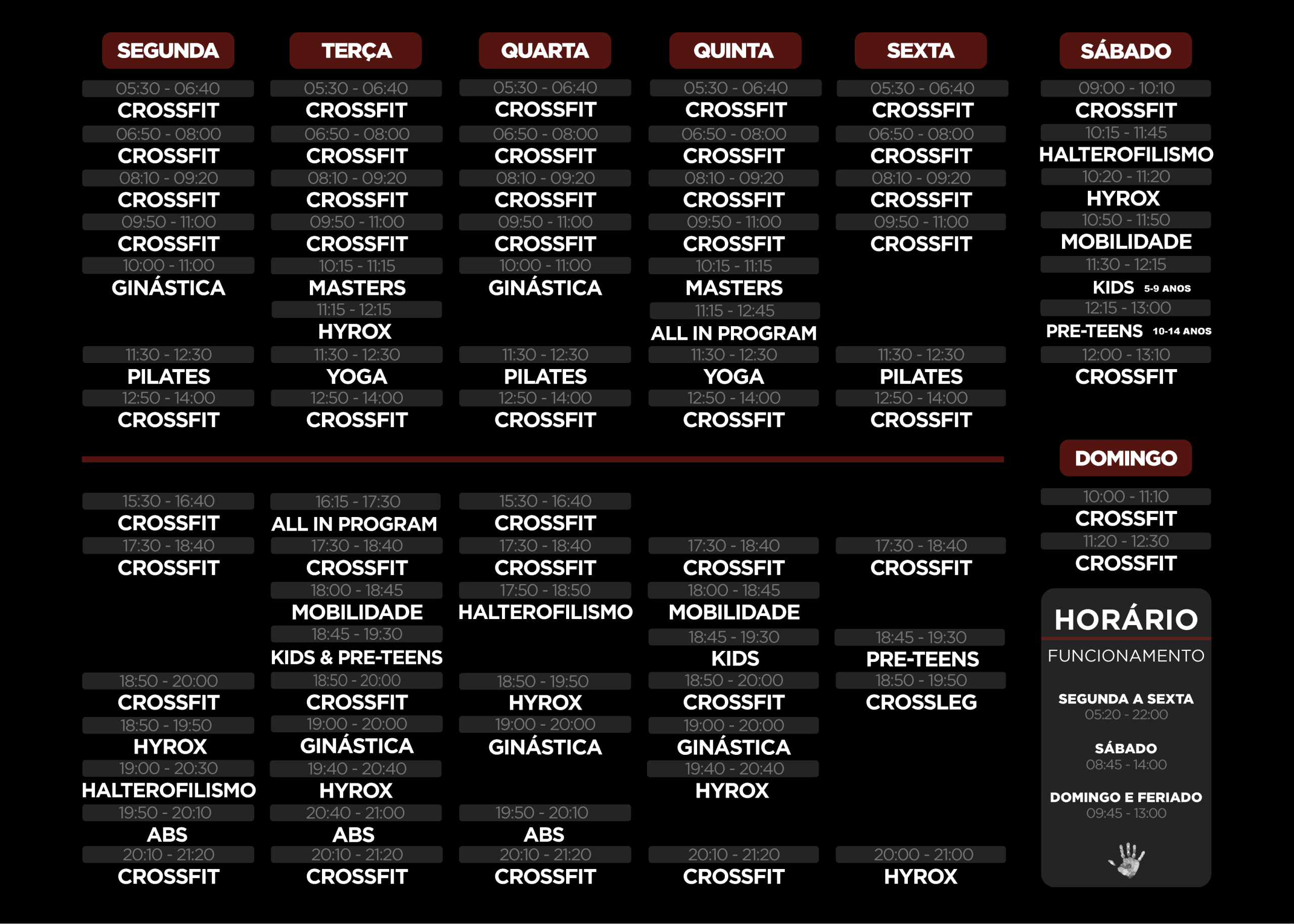 HORÁRIOS